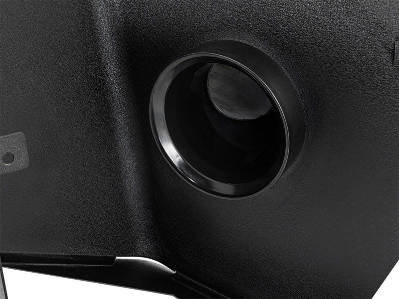 The use of a two-piece, 3-1/2 inch mandrel-bent aluminum intake tube, finished in a wrinkle-black powder coat, facilitates an unrestricted airflow path from the air filter to the throttle body. This design allows for significant improvements in horsepower and torque, enhancing overall performance during acceleration.