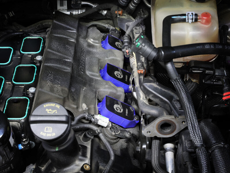 Enhance your vehicle's ignition system with the aFe POWER SCORCHER High-Performance Ignition Coils. These coils are a premium direct replacement for factory units, designed to optimize performance and ensure smooth operation. With a lower primary resistance than stock coils, they deliver a high energy spark that promotes complete combustion from idle to redline.