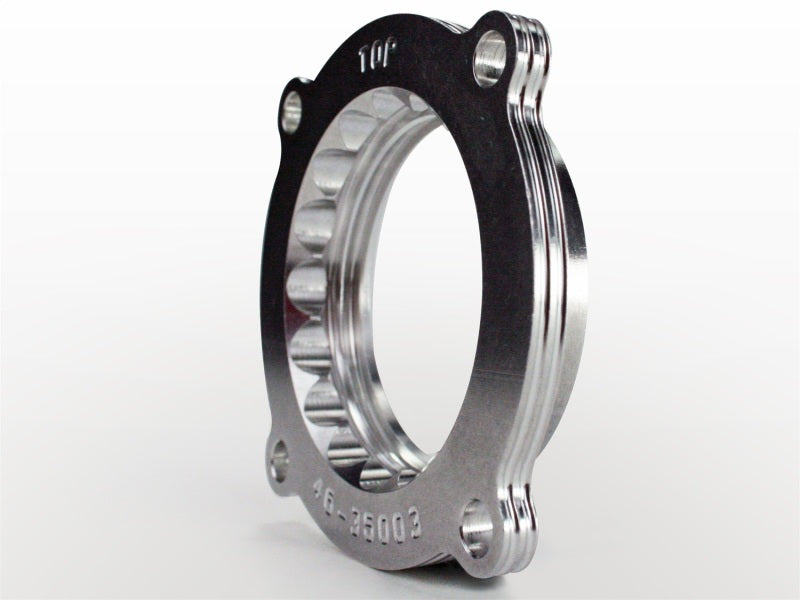 Silver Bullet throttle body spacers enhance engine performance by creating turbulence in the air flow before entering the engine, resulting in increased horsepower, torque, improved throttle response, and enhanced fuel efficiency. Crafted from durable T-6061 billet aluminum, these spacers feature a unique serrated/helix design that induces turbulence at the manifold, eliminating the whistling noise common with other helix-only spacers.