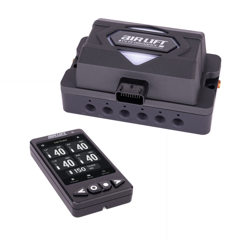 This pressure-based air management system provides precise control over air suspension setups, optimizing ride quality and vehicle handling with technical accuracy. It integrates a compact, all-in-one manifold that consolidates the electronic control unit (ECU), solenoids, and pressure sensors into a single, anodized aluminum housing, ensuring durability and efficient space utilization.