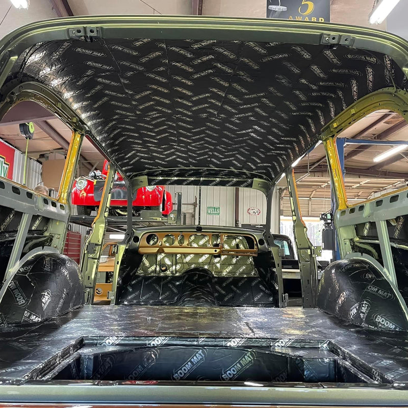 Engineered by DEI, the Boom Mat Damping Material provides high-performance interior isolation by soaking up noise, vibrations, squeaks and rattles from roads, engines, and audio systems. It pairs a thick asphalt-free, pure butyl damping layer with a 4 mil aluminum stiffening top skin to trap noise between the layers, delivering a quieter cabin and crisper stereo performance. The self-adhesive design features an easy-peel release liner and adheres to interior surfaces, including vertical or overhead panels, even in extreme temperatures. This two-sheet kit covers roughly 4 sq ft, each sheet measuring 12.5in x 24in, with a 2mm thick profile for robust damping while keeping weight down.