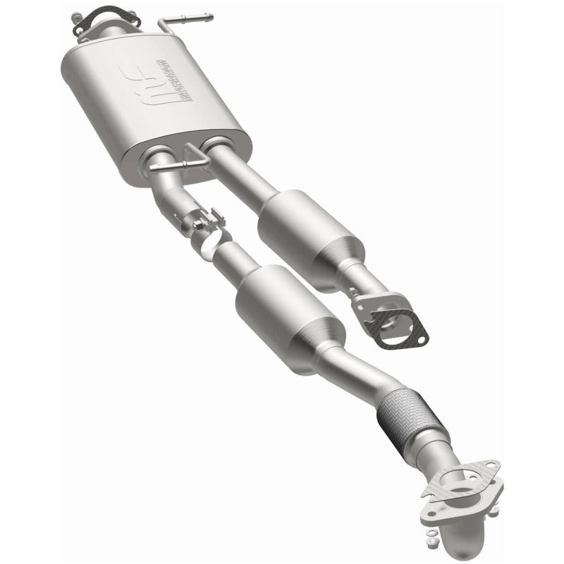 This direct-fit underbody catalytic converter from MagnaFlow replaces the factory unit to restore emissions compliance and prevent check engine light faults on compatible Buick and Chevrolet crossovers. Engineered as an OEM-grade, Federal/EPA compliant converter with a spun-body design and free-flowing mandrel-bent tubing, it installs without cutting or welding for a true bolt-on replacement. Precision 3D-scanned tooling and a single laser fusion weld reproduce OE fit and function while a compact, low-mass stainless steel construction improves thermal efficiency and corrosion resistance.