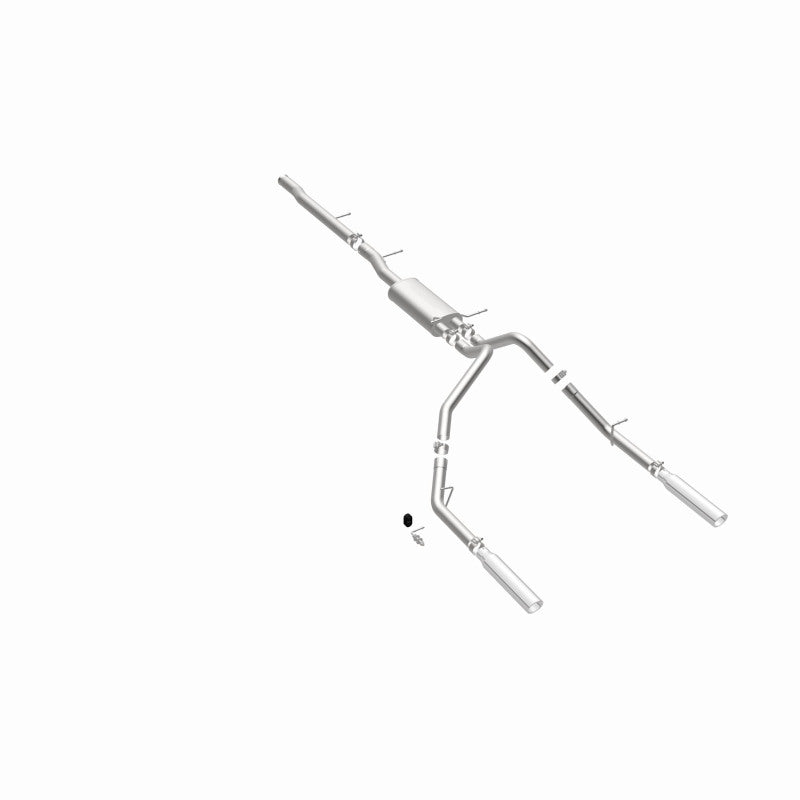This cat-back performance exhaust system enhances engine efficiency and sound, improving the overall driving experience for your vehicle. Designed with fast-flowing, mandrel bent 3-inch main piping, it ensures maximum exhaust flow and reduced back pressure. The system features a straight-through muffler design, delivering a distinctive, aggressive exterior tone while maintaining moderate sound levels inside the cabin.