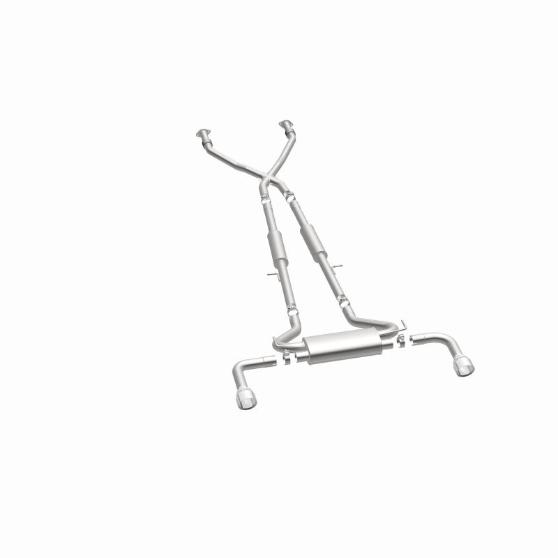 This performance exhaust system significantly enhances the exhaust flow and sound of compatible vehicles. The design incorporates a cat-back layout that effectively replaces the stock components, improving overall efficiency and power delivery. The mandrel-bent 2.5-inch main piping combined with three straight-through mufflers ensures a smooth exit for exhaust gases, contributing to optimal engine performance.