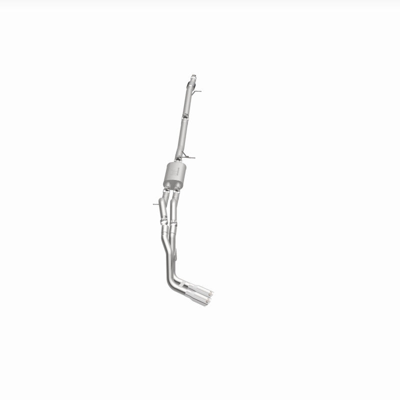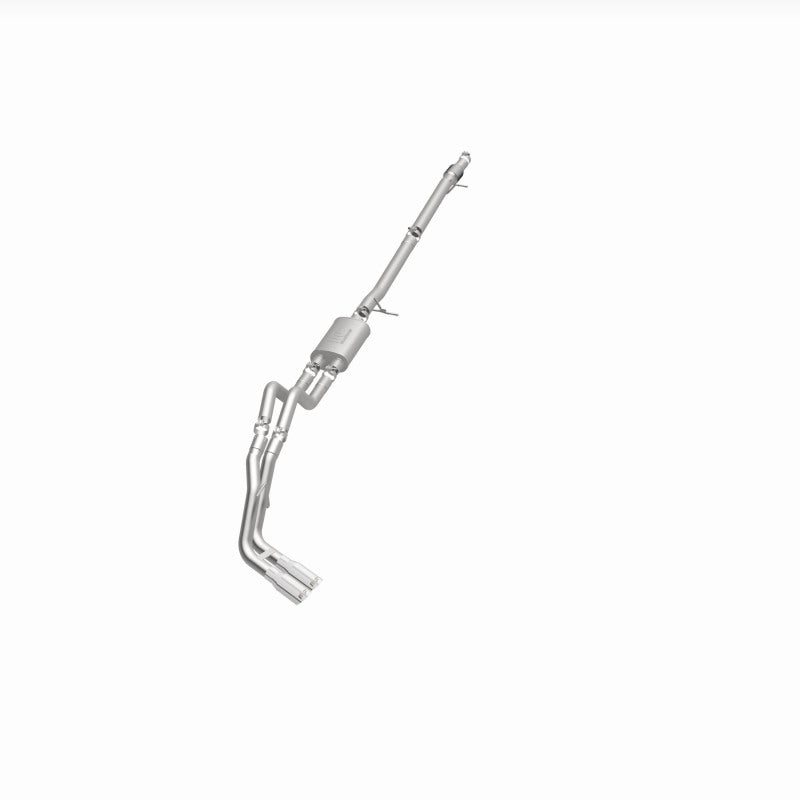 This exhaust system enhances performance and sound output, delivering a resonant and aggressive tone that accentuates the personality of your vehicle. The mandrel-bent 3-inch main piping ensures optimal airflow, improving horsepower and torque while maintaining a clean aesthetic with its polished stainless steel finish. The integrated straight-through mufflers facilitate smoother exhaust flow, resulting in an efficient and powerful performance. This component is designed for easy installation, featuring a direct-fit design that aligns perfectly with existing mounts, allowing for a hassle-free upgrade that enhances both sound and performance.