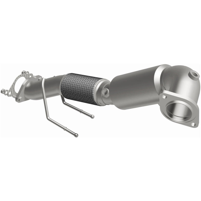 This direct-fit catalytic converter is engineered to maintain optimal exhaust flow while complying with Federal emissions requirements. It effectively keeps the check engine light off, thanks to its innovative design and construction. Featuring free-flowing mandrel-bent tubing and highly corrosion-resistant stainless steel, this component ensures durability and longevity in demanding conditions.