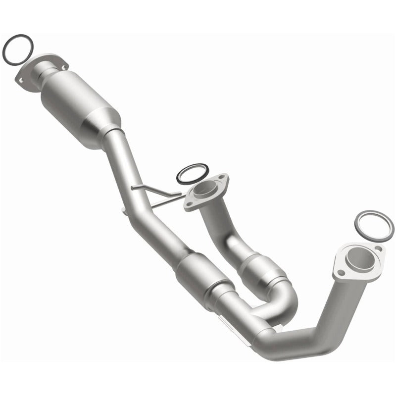 This direct-fit catalytic converter from MagnaFlow replaces the factory unit to restore emissions performance and keep the check engine light off, while meeting California Air Resources Board (CARB) requirements. Engineered with free-flowing mandrel-bent tubing and highly corrosion-resistant stainless steel, the converter replicates the OE spun body design for dependable sealing and improved thermal efficiency. It interchanges with OE part numbers 17410-20030 and 17410-20040 and is designed to fit 1995–1997 Toyota Avalon and compatible Camry and Lexus ES300 applications, providing a bolt-on emissions solution for CARB-restricted states.