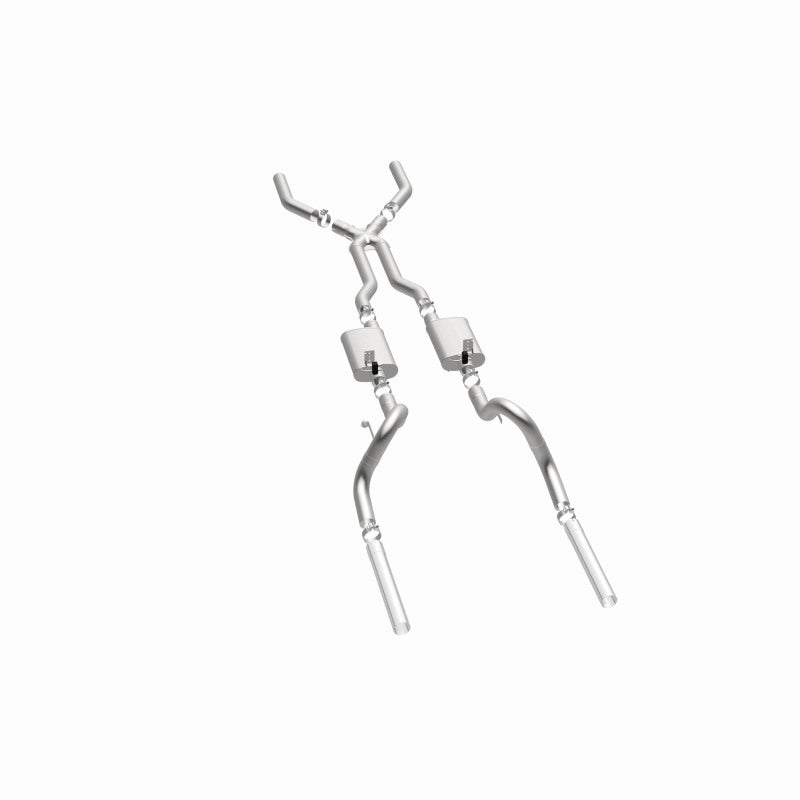 This performance exhaust system enhances the engine sound while improving the overall performance of select Ford Mustang models from 1964 to 1966. It features a robust, corrosion-resistant stainless steel construction, ensuring durability and longevity. The design incorporates a crossmember-back layout, effectively replacing the exhaust system from the crossmember back, which allows for optimal exhaust flow and performance.