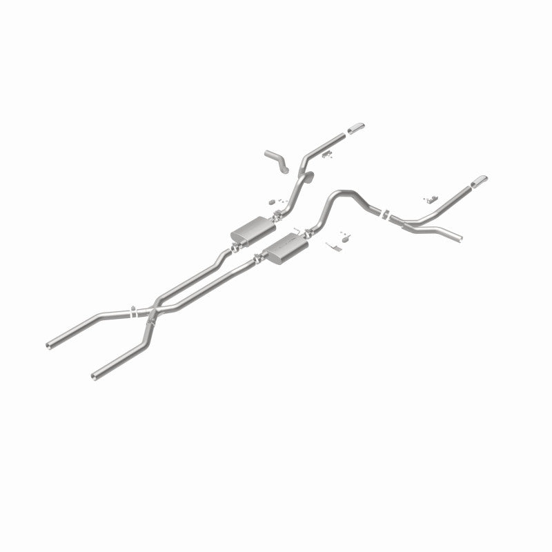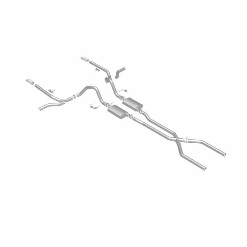 This exhaust system enhances the engine sound and performance of your 1965-1969 Chevrolet Impala. With a deep, resonant tone at moderate exterior and mild interior sound levels, this system is engineered for optimal airflow and efficiency. The robust stainless steel construction ensures durability against corrosion, while offering an impressive aesthetic with polished tips. The design includes mandrel-bent 2.5-inch main piping and straight-through mufflers, promoting quick exhaust flow.