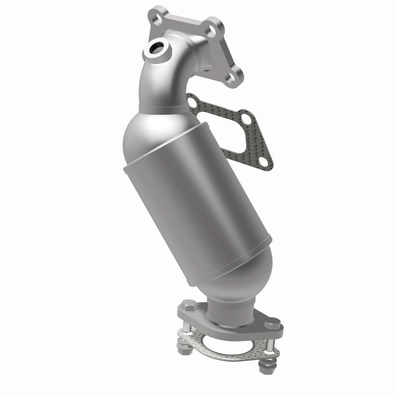 This direct-fit catalytic converter is engineered to maintain optimal engine performance while ensuring compliance with Federal emissions regulations. It features free-flowing mandrel-bent tubing designed to minimize exhaust back pressure, thereby enhancing efficiency without the need for cutting or welding during installation. The highly durable, corrosion-resistant stainless steel construction guarantees longevity and reliability.