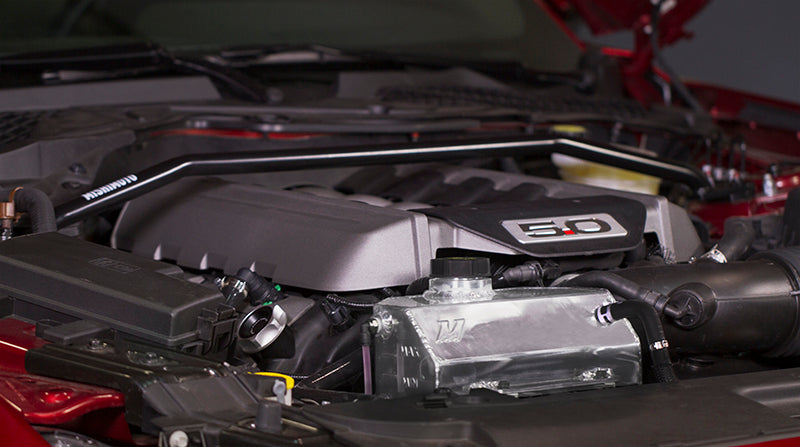 This front strut tower brace from Mishimoto ties the Mustang’s front strut towers together to stiffen the chassis, reducing flex for improved braking and cornering response on street and autocross applications. Engineered for 2015 and newer Ford Mustang platforms, the brace bolts into existing mounting points and complements the stock performance package K-brace for maximum front-end rigidity without cutting or drilling.