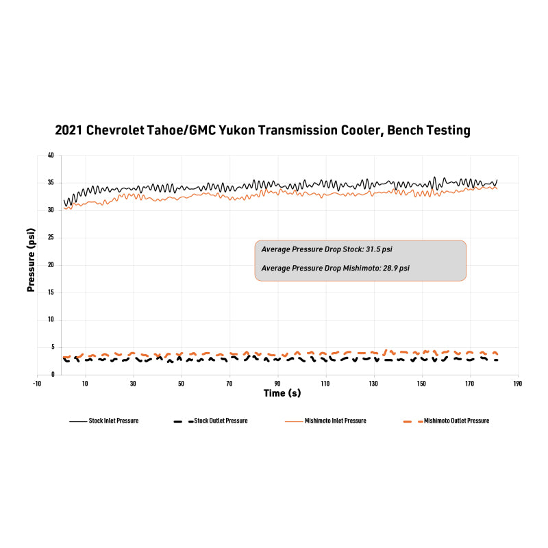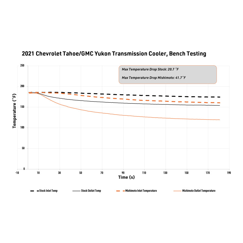 Keep transmission temperatures under control during towing, hauling, or extended drives with a direct-fit Mishimoto transmission cooler engineered for 2021+ Chevy, GMC, and Cadillac T1 platform SUVs. The cooler replaces the restrictive factory unit with a much larger tube-and-fin core to maximize heat rejection and reduce transmission stress under heavy loads, while stout internal strutted tubes improve pressure resistance and protect against chassis flex. Installation is straightforward with factory-compatible connections, included hardware, and a billet driver’s side bracket with slotted adjustment for precise fitment—no grille removal required on most models.