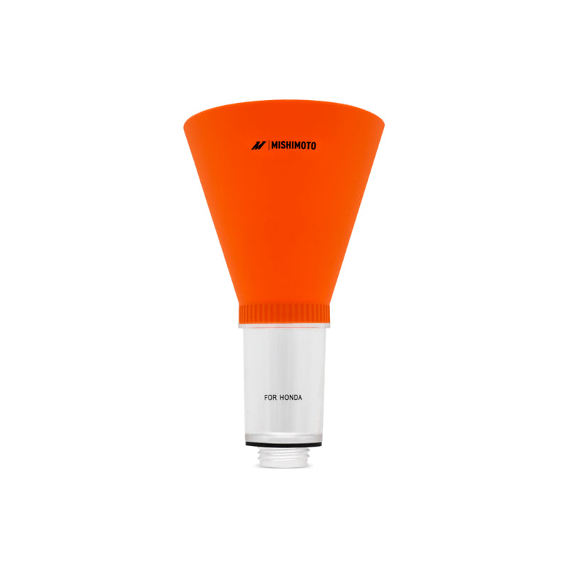 This screw-on oil funnel kit from Mishimoto provides a cleaner, more efficient oil change by combining a no-spill funnel with direct-fit filler necks and adapters for popular Acura, Honda, Hyundai and Infiniti vehicles. The transparent filler necks let you monitor fluid flow while the included 150-degree extended adapter and screw-on design ensure a secure, mess-free connection to factory fill ports for straightforward service on compatible models.